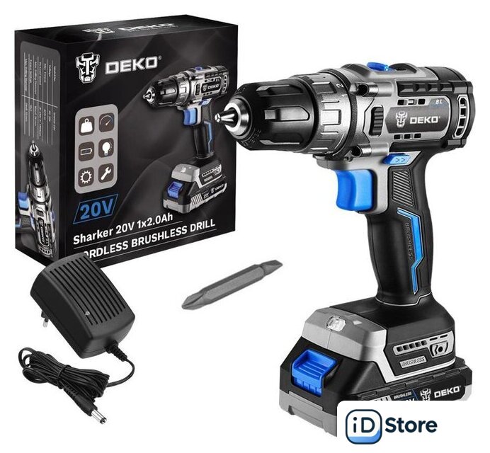 Комплектация | Дрель-шуруповерт DEKO Sharker 20V - 1 штАккумулятор - 1 штЗарядное устройство - 1 штБита - 1 штИнструкцияКоробка |