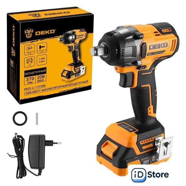 Комплектация | - Гайковерт - 1 шт.- Аккумулятор 3,0 Ач - 1 шт.- Зарядное устройство - 1 шт.- Скоба поясная - 1 шт.- Уплотнительное кольцо - 1 шт.- Штифт - 1 шт.- Руководство по эксплуатации.- Коробка. |