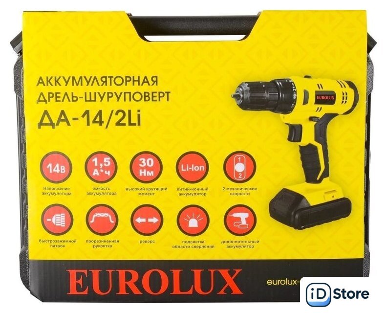 | Комплектация | - Дрель-шуруповерт- 2 аккумулятора- Зарядное устройство- Паспорт- Кейс |