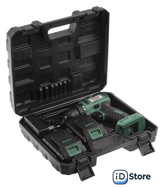 Комплектация | Дрель-шуруповерт - 1 шт.Зарядное устройство - 1 шт.Аккумулятор 2,0 Ач - 2 шт.Кейс |