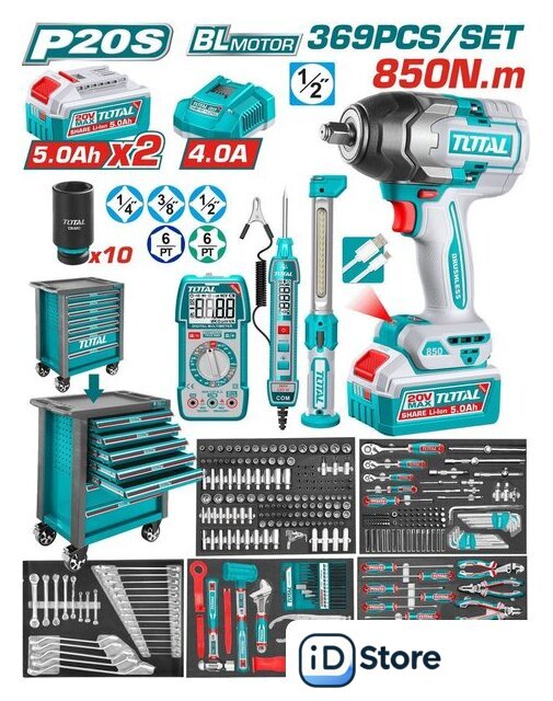 | Комплектация | Аккумуляторный инструмент и электроникаАккумуляторный ударный гайковёрт 20 В, 1/2" — 1 шт.Аккумулятор Li-ion 5.0 А·ч — 2 шт.Зарядное устройство 4 A — 1 шт.Ударные удлинённые головки 1/2" (10, 12, 13, 14, 15, 17, 19, 21, 22, 24 мм) — 10 шт.Аккумуляторный рабочий фонарь — 1 шт.Автомобильный тестер — 1 шт.Цифровой мультиметр — 1 шт.Инструментальная тележкаМеталлическая тележка с 7 ящиками — 1 шт.Колёса 5" — 2 шт.Металлические крючки для навесного инструмента — 5 шт.Инструмент 1/4"Трещотка 1/4"Головки 1/4"Удлинённые головки 1/4"TORX-головки 1/4"Удлинители 1/4"Гибкий удлинитель 1/4"Кардан 1/4"Вороток T-образный 1/4"Переходник 1/4"Магнитный держатель битДержатель бит 1/4"Бит-головки 1/4"Биты 6.35×25 ммИнструмент 3/8"Трещотка 3/8"Головки 3/8"Удлинённые головки 3/8"TORX-головки 3/8"Удлинители 3/8"Кардан 3/8"Переходник 3/8"Бит-головки 3/8"Инструмент 1/2"Трещотка 1/2"Головки 1/2"Удлинённые головки 1/2"TORX-головки 1/2"Свечные головки 1/2"Кардан 1/2"Удлинители 1/2"Вороток T-образный 1/2"Вороток L-образный 1/2"Бит-головки 1/2"Держатель бит 1/2"Переходник 1/2"БитыБиты 8×30 ммБиты 8×70 ммКлючиКомбинированные ключиКлючи для тормозных трубокОтогнутые накидные ключиШестигранные ключиTORX-ключиРазводной ключ 10"Ключ с фиксатором (lock wrench)Ключ масляного фильтраКлещи для масляного фильтраОтвёрткиСтандартные отвёрткиУсиленные отвёртки (go-thru)Плоскогубцы и зажимыПассатижи комбинированныеДлинногубцыБокорезыКлещи переставныеКлещи для стопорных колецУдарный и слесарный инструментМолоток без отдачи 2 lbМолоток шаровый 16 ozСъёмники обшивки — 5 шт.Экстракторы — 5 шт.Магнитный телескопический захватЗубила — 3 шт.Выколотки — 6 шт.Керны — 3 шт. |