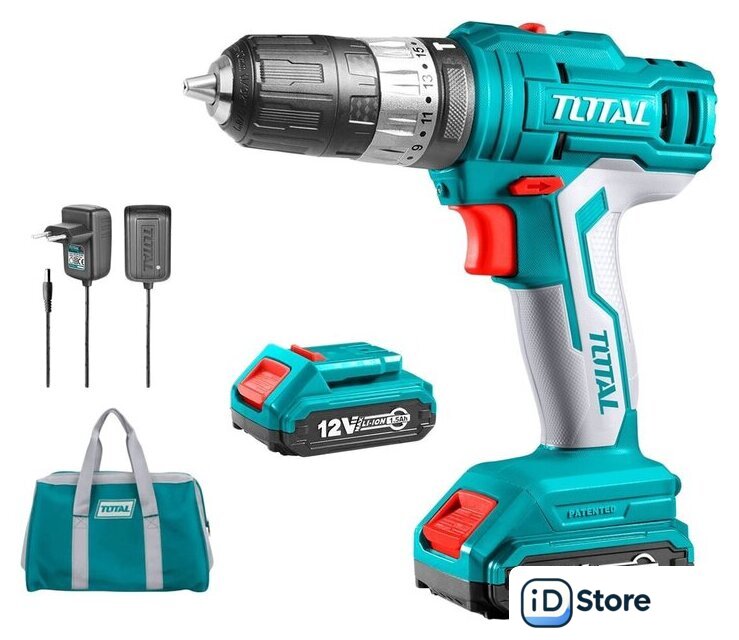 Комплектация | - Аккумулярторная дрель-шуруповерт - 1 шт.- Аккумулятораная батарея Li-Ion 2,0 А*ч - 2 шт.- Зарядное устройство - 1 шт.- Двухсторонняя бита - 1 шт.- Сумка- Коробка |