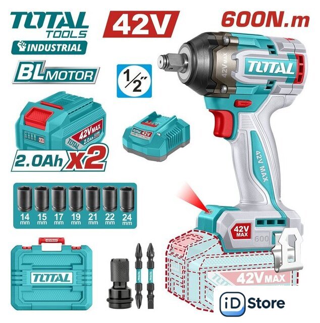 | Комплектация | - Гайковерт - 1 шт.- Аккумулятор 2,0 Ач TFBLI42201 - 2 шт.- Зарядное устройство TFCLI42021 - 1 шт.- Ударные головки (14, 15, 17, 19, 21, 22, 24 мм) - 7 шт.- Переходник 1/2" квадрат → 1/4" HEX - 1 шт.- Биты - 2 шт.- Инструкция- Кейс |