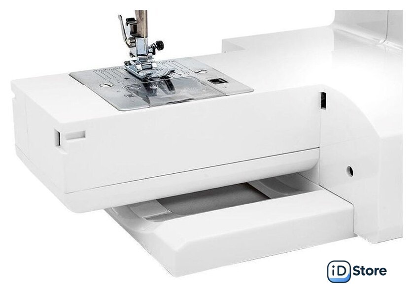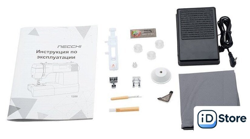 | Комплектация | большой и маленький держатели катушки, вспарыватель шва со щеткой для чистки машины, лапка для атласных строчек, отвертка, запасные иглы, дополнительные шпульки. |