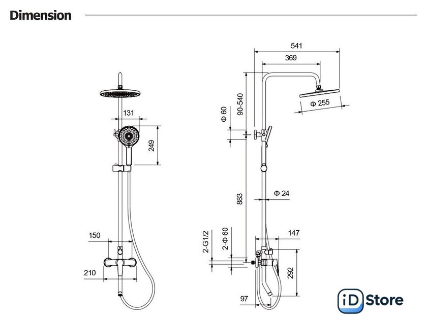 | Диаметр (ширина) верхнего душа | 255 мм |