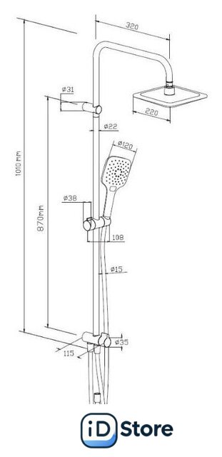 | Диаметр (ширина) верхнего душа | 220 мм |