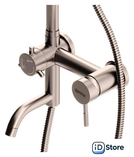 Комплектация | верхний душ, штанга, ручной душ (лейка), держатель лейки, шланг, смеситель, излив для ванны |