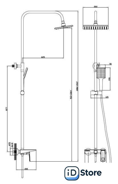 | Комплектация | верхний душ, штанга, ручной душ (лейка), держатель лейки, шланг, смеситель, излив для ванны |