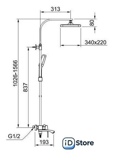 | Диаметр (ширина) верхнего душа | 340 мм |