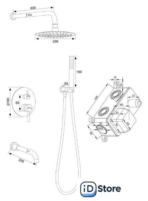 | Диаметр (ширина) верхнего душа | 200 мм |