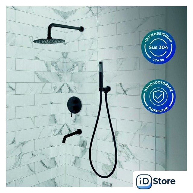 | Комплектация | верхний душ, ручной душ (лейка), держатель лейки, шланг, смеситель |