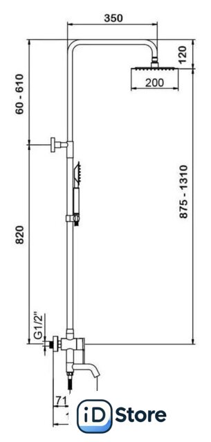 Вылет верхнего душа 350 мм