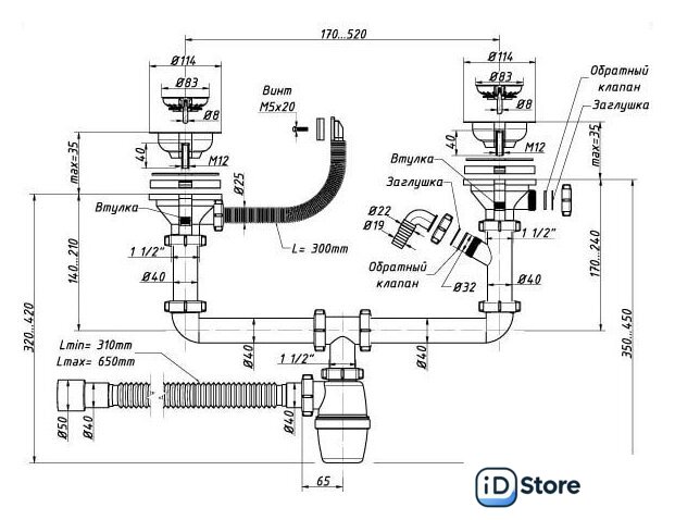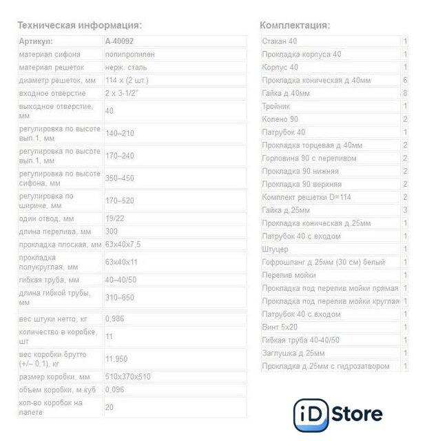 Назначение | для двойной мойки (одноуровневой/разноуровневой) |