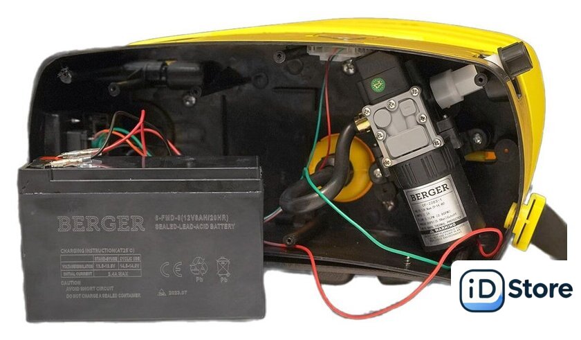 | Комплектация | зарядное устройство, ЗИП (уплотнительные кольца 6 шт.), насадка для распыления, фильтр, лямки съемные |