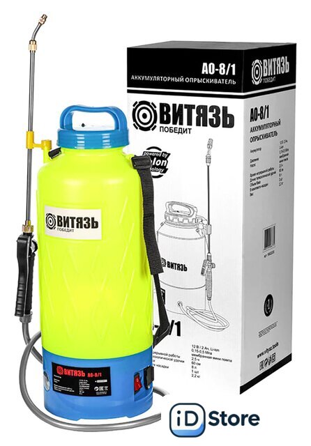 Комплектация | ОпрыскивательЗарядное устройствоРемень ранцевыйКомплект распылителей (сопел)Держатель штангиКолпачок регулятораИнструкцияГарантийный талон |