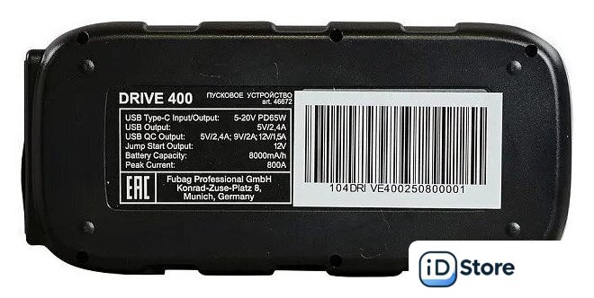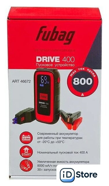 | Комплект поставки | - Пусковое устройство - 1 шт., - Клеммы для запуска двигателя - 1 шт., - Адаптер переменного тока - 1 шт., - USB-кабель - 1 шт., - Чехол - 1 шт. |