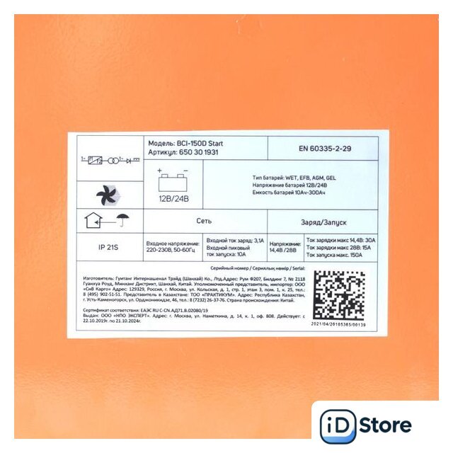 | Ток зарядки | 3 — 30 А |