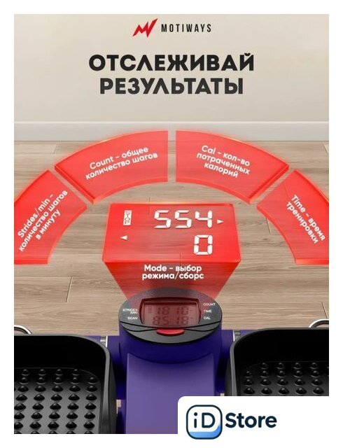 | Показания на дисплее | время тренировки, кол-во шагов, калории, шаги в минуту |