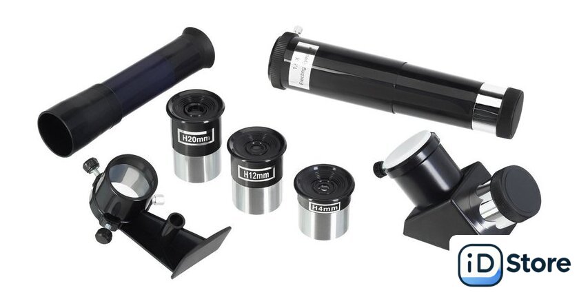 | Комплект поставки | Оптическая труба телескопаОкуляры 4 мм, 12 мм, 20 ммОборачивающий окуляр 1,5xОптический искатель 6x25Диагональное зеркало 90°Азимутально-экваториальная монтировкаАлюминиевая треногаЛоток для аксессуаровКрепежное кольцоРучки тонких движенийИнструкция по эксплуатации и гарантийный талон |