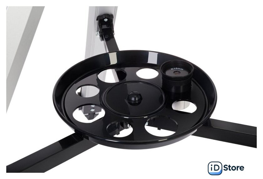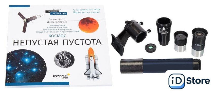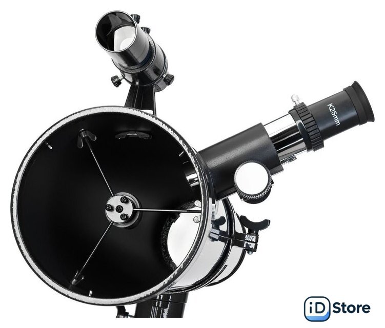 | Комплект поставки | Оптическая труба телескопа, Окуляр K10 мм, Окуляр K25 мм, Оптический искатель 6х30, Линза Барлоу 2х, Лунный фильтр, Экваториальная монтировка EQ3, Ручки тонких движений, Противовес, Штанга противовеса, Крепежное кольцо, Алюминиевая тренога с лотком для аксессуаров, Книга знаний «Космос. Непустая пустота», Инструкция по эксплуатации и гарантийный талон. |