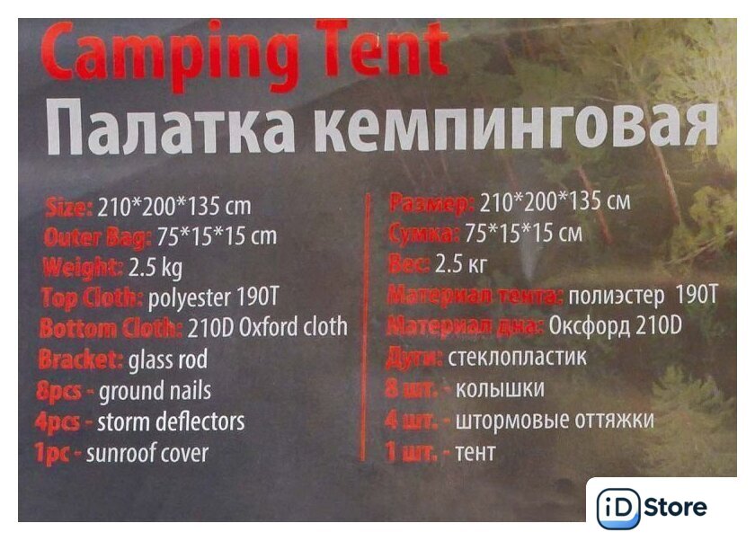 | Материал внутренней палатки | полиэстер |