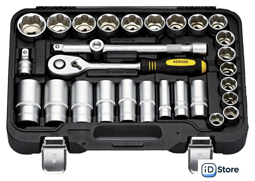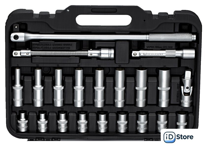 | Комплектация | - 25 шт.: Головки торцевые 6-гранные Super Lock: 8, 9, 10, 11, 12, 13, 14, 15, 16, 17, 18, 19, 20, 21, 22, 23, 24, 25, 26, 27, 28, 29, 30, 32, 36 мм- 14 шт.: Головки торцевые длинные 6-гранные Super Lock: 8, 10, 11, 12, 13, 15, 17, 18, 19, 22, 24, 27, 30, 32 мм- 3 шт.: Головки свечные: 14 (12-гранная), 16, 21 мм- 1 шт.: Трещотка (ключ трещоточный с быстрым сбросом): 45 зубов- 1 шт.: Вороток шарнирный: 375 мм- 3 шт.: Удлинитель: 50, 125, 250 мм- 1 шт.: Переходник скользящий для удлинителей- 1 шт.: Кардан шарнирный- 1 шт.: Удлинитель гибкий: 200 мм |