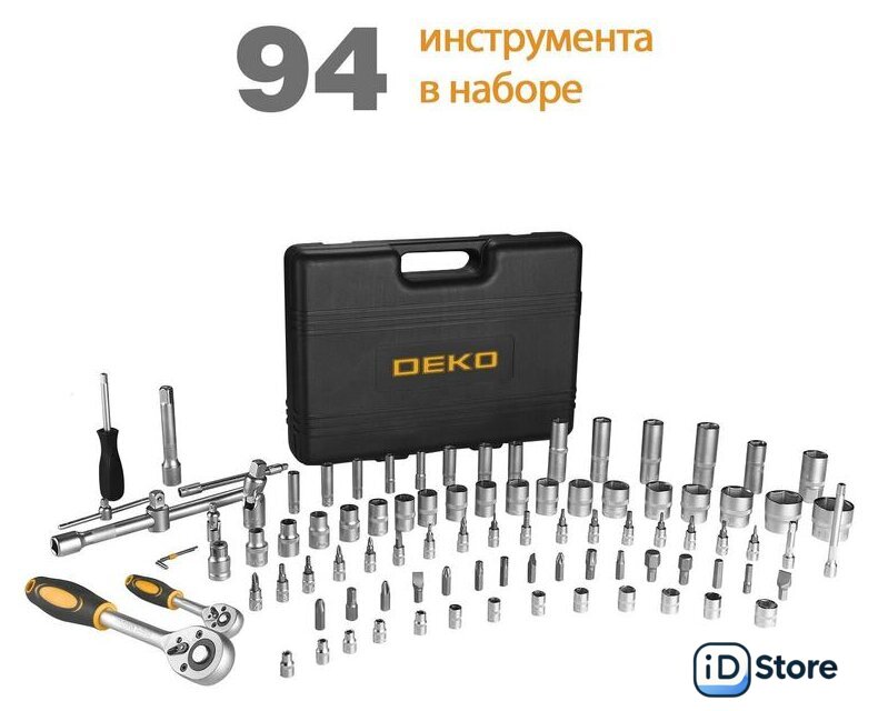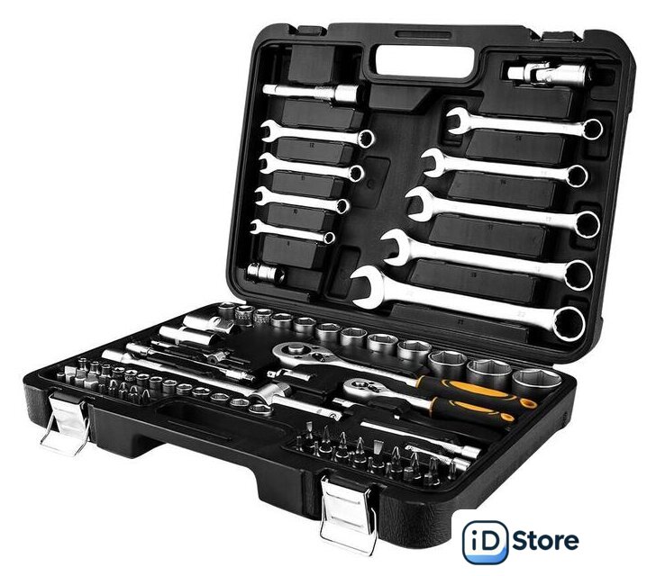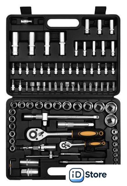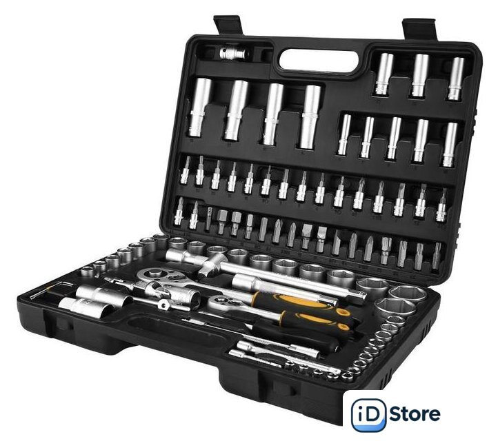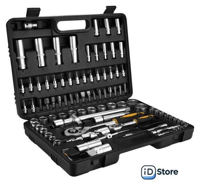 | Комплектация | - Головки 1/4": 4, 4.5, 5, 5.5, 6, 7, 8, 9, 10, 11, 12, 13, 14 мм.- Головки удлиненные 1/4": 6, 7, 8, 9, 10, 11, 12, 13 мм.- Удлинитель торцевых головок 1/4" х 2", 4".- Шарнир карданный 1/2", 1/4".- Держатель для бит 1/4".- Удлинитель гибкий 1/4" х 6".- Трещотка 1/2", 1/4".- Биты: SL4, 5.5, 7; PH1, 2; PZ1, 2; HEX3, 4, 5, 6; T8, 10, 15, 20, 25, 30.- Головка свечная 1/2": 16 мм, 21 мм.- Переходник для головок торцевых 1/2".- Головки 1/2": 10, 11, 12, 13, 14, 15, 16, 17, 18, 19, 20, 21, 22, 23, 24, 27, 30, 32 мм.- Головки удлиненные 1/2": 14, 15, 17, 19 мм.- Удлинитель торцевых головок 1/2": 5", 10".- Выдвижной Т-образный стержень 1/4".- Шестигранный ключ 1.5, 2, 2.5 мм.- Переходник для бит 1/2"Х8мм.- Биты: SL8, 10, 12; T40, 45, 50, 55; PH3, 4; PZ3, 4; HEX8, 10, 12, 14. |
