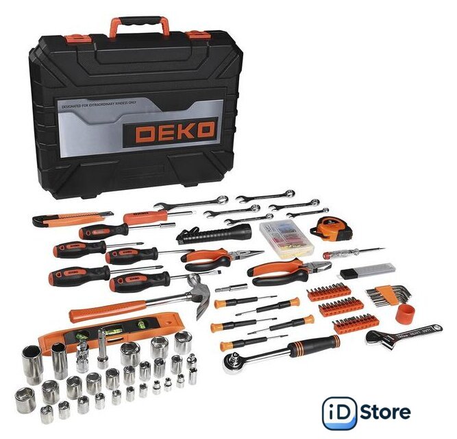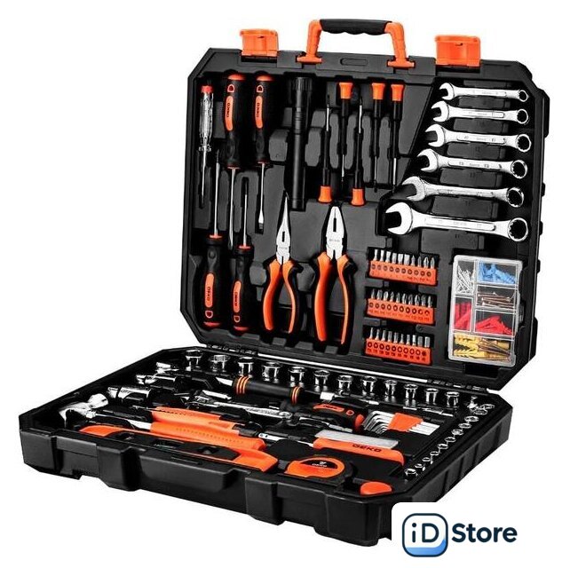 Комплектация | - отвертка индикаторная 100-220В- отвертки PH1х75; PH2х100; SL5х75; SL6х100мм- фонарик- пассатижи 6"- плоскогубцы 6"- отвертки PH000; PH00; PH0; SL2.4; SL3.0- биты SL3; SL4; SL5; SL6; SL6; SL7- биты PH0; PH1; PH2; PH2; PH2; PH3; PH3- биты PZ0; PZ1; PZ2; PZ2; PZ2; PZ3; PZ3; AD- биты H3; H4; H5; H6; T10; T15; T20; T25; T30- ключи 8; 10; 12; 13; 14; 17мм- муфта 1/4"- адаптор 1/4"x3/8"- 1/4" торцевые головки 4,0мм; 5,0мм; 6,0мм; 7,0мм; 8,0мм; 9,0мм; 10,0мм; 11,0мм; 12,0мм; 13,0мм- 3/8" торцевые головки 10,0мм; 11,0мм; 12,0мм; 13,0мм; 14,0мм; 15,0мм; 16,0мм; 17,0мм; 19,0мм; 20,0мм; 21,0мм; 22,0мм- 3/8" головки свечные 16мм; 21мм- удлинитель 3/8" длина 3"- универсальный шарнир 3/8"- рукоятка трещеточная 3/8"- рукоятка отверточная 1/4"- ключ шестигранный 1,5мм; 2,0мм; 2,5мм; 3,0мм; 4,0мм; 5,0мм; 5,5мм; 6,0мм- отвертка торцевая 6,35мм- ключ разводной 6"- набор лезвий для ножа строительного (10шт.)- нож строительный 18мм- молоток 8"- уровень9"- рулетка 3м- удлинитель для бит 1/4" магнитный- комплект крепежа по дереву 104шт. |