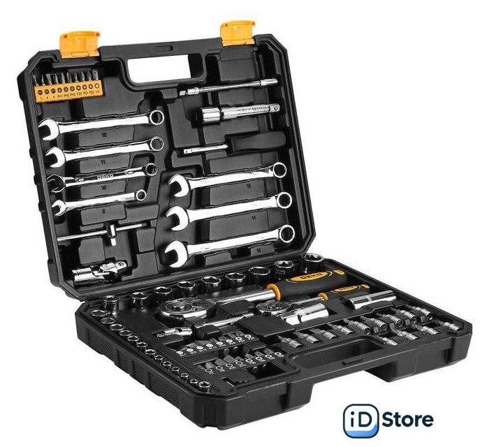 Комплектация | Биты 25L*10 шт. (SL3,4,6,PH1,2,3,PZ0,1,2,A.D.)Комбинированные ключи *7шт. (8,10,11,12,13,14,15 мм)Держатель головок *1шт. 1/4"Универсальный шарнир *2шт. (1/4",1/2")Вороток*1шт 1/4"Удлинитель *2шт. (1/4"x3",1/2"x5")Гибкий стержень *1 шт. 1/4"Соединитель *1 шт. 1/4"Адаптер *2 шт. (1/4"x6.35mm, 1/2"x8mm)Головки 1/4" *12 шт. (4,4.5,5,5.5,6,7,8,9,10,11,12,13мм)Головки 1/2" *8 шт. (14,15,16,17,18,19,20,22мм)Гаечный ключ с трещоткой *2шт. (1/4",1/2")Головки свечные *2шт. (1/2"x16,21мм)Шестигранный ключ *3шт. (1.5,2,2.5мм)Биты 8мм *16шт. (SL7,8,10,12,PH3,4,PZ3,4,H7,8,10,12,T30,40,45,50)Биты-головки *13шт. (SL4, 5.5, 7,PH1, 2,PZ1, 2,H3, 4, 5,T10, 15, 20) |