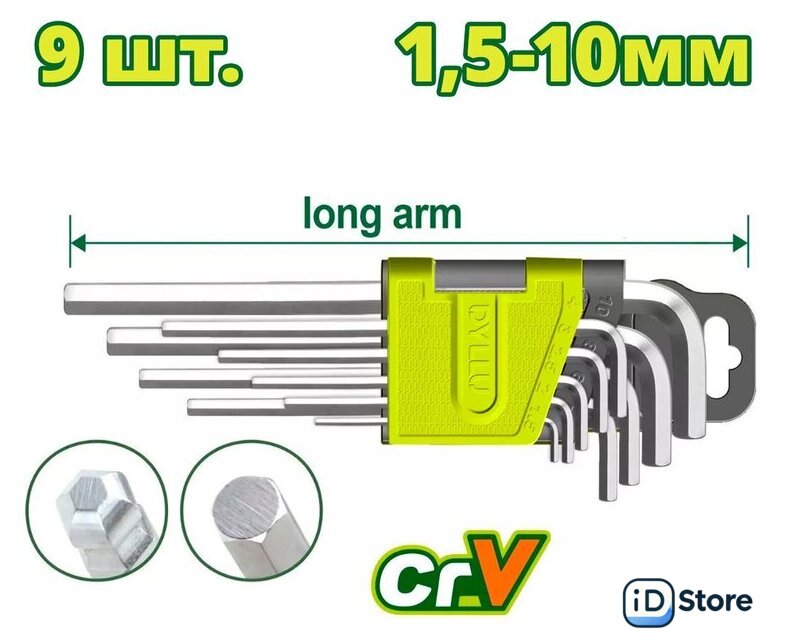 Комплектация | Ключ длинный шестигранный со сферической головкой (1,5, 2, 2,5, 3, 4, 5, 6, 8, 10 мм) - 9 шт. |