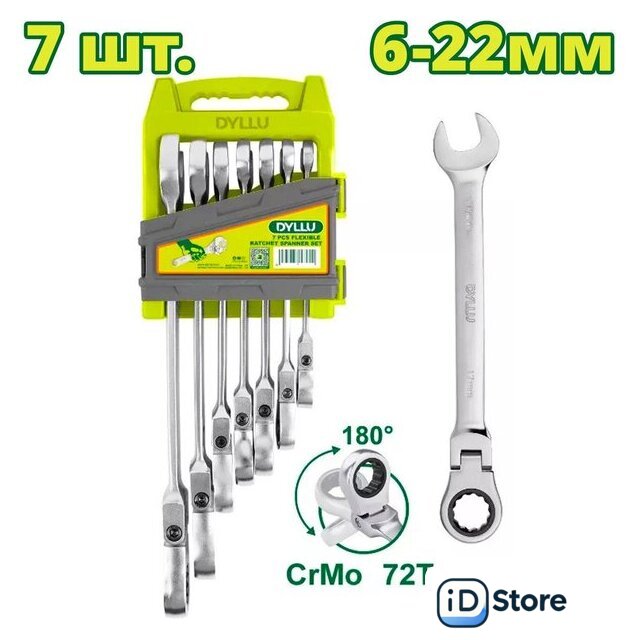 Комплектация | Ключ комбинированный с трещоткой и шарниром (8 мм, 10 мм, 12 мм, 13 мм, 14 мм, 17 мм, 19 мм) - 7 шт. |