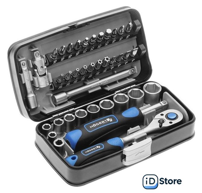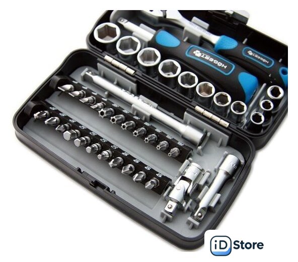 | Комплектация | Головки торцевые 1/4’’: 5.5, 6, 7, 8, 9, 10, 11, 12, 13, 14 ммОтверточные биты 1/4”:Плоские SL3, SL4, SL5, SL6 мм,Крестообразные PH1, PH2 x 2, PH3 и PZ1, PZ2, PZ3Torx TT10, TT15, TT20, TT25, TT27, TT30, TT40Шестигранные H3, H4, H5, H6 ммОтвертка для головок 1/4"Трещотка 1/4"Удлинитель 1/4" 50, 100 ммУниверсальный шарнир 1/4"Переходник для бит 1/4” |