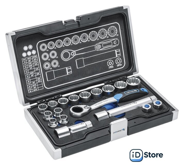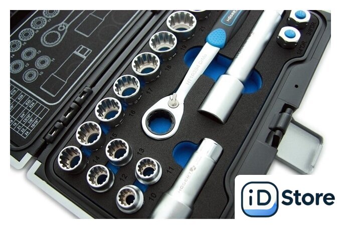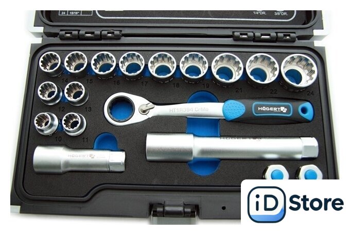 | Комплектация | Сквозные торцевые головки: 10, 11, 12, 13, 14, 15, 16, 17, 18, 19, 21, 22, 24 ммСквозная трещоткаПереходник трещотки 1/4” и 3/8”Удлинитель 80 и 150 мм |