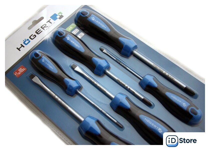 | Комплектация | - Отвертки с прямым шлицем: 6x100 мм / 5x75 мм / 3x75 мм, - Отвертки Phillips: PH2x100 мм / PH1x75 мм / PH0x75 мм |