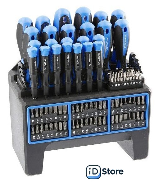 | Комплектация | - Отвертки (16 штук):Плоские отвертки: 3 x 75 мм, 5 x 75 мм, 5 x 100 мм, 6 x 100 мм, 6 x 150 мм, 8 x 150 ммКрестовые отвертки: PH0 x 75 мм, PH1 x 75 мм, PH1 x 100 мм, PH2 x 100 мм, PH2 x 150 ммОтвертки Torx: T10 x 75 мм, T15 x 75 мм, T20 x 75 ммКвадратные отвертки: S1 x 75 мм, S2 x 100 мм- Отвертки 1/4 ”на головку (48 штук) плоские 3 мм, 3 мм, 4 мм, 4 мм, 5 мм, 5 мм, 6 мм, 6 мм; перекрестные PH0, PH0, PH1, PH1, PH2, PH2, PH3, PH3; TORX типа T10, T10, T15, T15, T20, T20, T20, T25, T25, T25, T27, T27, T30, T30; H3, H3, H4, H4, H5, H5, H5, H6, H6, H6, квадрат S0, S0, S1, S1, S2, S2, S3, S3- Шестигранные ключи (16 шт.) 1,5 мм, 2,0 мм, 2,5 мм, 3,0 мм, 4,0 мм, 5,0 мм, 5,5 мм, 6,0 мм, 1/16 дюйма ", 5/64", 3/32 ", 1/8", 5/32 ", 3/16", 7/32 ", 1/4"- Биты для прецизионных отверток (20 штук) PH000, PH000, Y000, Y000; 0,8 мм, 0,8 мм, 1,2 мм, 1,2 мм; Т4, Т4, Т5, Т5, Т6, Т6; 1,0 мм, 1,0 мм, 1,5 мм, 1,5 мм, 2,0 мм, 2,0 мм- Отвертки для гаек (6 штук) 6 мм, 7 мм, 8 мм, 9 мм, 10 мм, 11 мм- Прецизионные отвертки (6 шт.) 2,0 x 40 мм, 2,5 x 40 мм, 3,0 x 40 мм, PH00 x 40 мм, PH0 x 40 мм, T10 x 40 мм- Битовый адаптер- Прецизионный адаптер для бит- Адаптер для розеток |