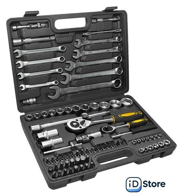 | Комплектация | Торцевая головка квадрат 1/4" (4, 4.5, 5, 5.5, 6, 7, 8, 9, 10, 11, 12, 13, 14мм) - 13шт. Торцевая головка глубокая квадрат 1/2" (14, 15, 16, 17, 18, 19, 20, 22, 24, 27, 30, 32 мм) - 12 шт. Головка квадрат 1/4" со вставками (SL4, SL5.5, SL7, PH1, PH2, PZ1, PZ2, HEX3, HEX4, HEX5, HEX6, T8, Т10, Т15, Т20, Т25, Т27, Т30) - 17 шт. Свечная головка квадрат 1/2" 16мм - 1шт. Свечная головка квадрат 1/2" 21мм - 1 шт. Удлинитель 50мм квадрат 1/4" - 1 шт. Удлинитель 100мм квадрат 1/4" - 1шт. Удлинитель 150мм квадрат 1/2" - 1 шт. Удлинитель 250 квадрат 1/2" - 1 шт. Удлинитель гибкий 150мм квадрат 1/4" - 1 шт.Переходник для удлинителя 250мм квадрат 1/2" - 1шт. Переходник 30мм квадрат -1/4" - 1 шт.Переходник квадрат 1/2" для бит - 1 шт.Карданный шарнир для торцевой головки квадрат 1/4" - 1 шт. Карданный шарнир для торцевой головки квадрат 1/2" - 1 шт. Рукоятка с трещеткой квадрат 1/4" - 1 шт. Рукоятка с трещеткой квадрат 1/2" - 1 шт. Рукоятка для торцевых головок квадрат 1/4" - 1 шт. Т-образный вороток для торцевой головки квадрат 1/4" - 1 шт. Бита 30мм (SL8, SL10, SL12, Т40, Т45, Т50, Т55, РZ3, РН3, РН4, РZ4, HEX7, HEX8, HEX10, HEX12, HEX14) 15шт.Комбинированный гаечный ключ (8, 10, 11, 12, 13, 14, 17, 19, 22 мм) - 9 шт. |
