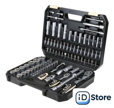 | Комплектация | Торцевые головки 1/2" - 18 предметов: (10, 11, 12, 13, 14, 15, 16, 17, 18, 19, 20, 21, 22, 23, 24, 27, 30, 32мм)Торцевые головки 1/4" - 13 предметов: (4, 4.5, 5, 5.5, 6, 7, 8, 9, 10, 11, 12, 13, 14мм) Глубокие торцевые головки 1/2" - 4 предмета: (14, 15, 17, 19мм)Глубокие торцевые головки 1/4" - 8 предметов: (6, 7, 8, 9, 10, 11, 12, 13мм) Трещотка - 2 (1/2", 1/4") Кардан - 1/2", 1/4" Удлинители 1/2" - 2 (125 и 250мм) Удлинители 1/4" - 2 (50 и 100мм) Удлинитель гибкий -1/4" Отвертка под биты - 1/4" Вороток - 1/4" Головки свечные 1/2" - 2 предмета: (16 мм, 21 мм) Переходник Шестигранные ключи - 3 предмета (1.5, 2, 2.5) Биты-насадки 1/2" - 15: HEX: 8, 10, 12, 14 SL: 8, 10, 12 PH: 3, 4 PZ: 3, 4 T: 40, 45, 50, 55 Биты-насадки 1/4" - 17: HEX: 3, 4, 5, 6 SL: 4, 5.5, 7 PH: 1, 2 PZ: 1, 2 T: 8, 10, 15, 20, 25, 30 |