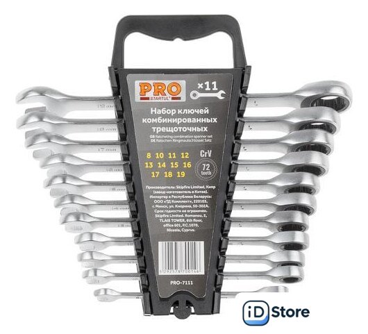 Комплектация | Набор ключей комбинированных 8-19мм 11шт (8, 10, 11, 12, 13, 14, 15, 16, 17, 18, 19 мм) трещоточных. |