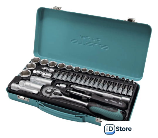 | Комплектация | - Головки торцевые 1/4: 4, 5, 6, 7, 8, 9, 10, 11 мм.- Отвертка держатель 1/4.- Головки торцевые с битами 1/4: PH1, PH2, PZ1, PZ2, SL4, SL5.5, SL7, H3, H4, H5, H6, T8, T10, T15, T20, T25, T30.- Головки торцевые 3/8: 12, 13, 14, 15, 17, 18, 19, 20, 22, 24 мм.- Головки свечные 3/8: 16, 21 мм.- Трещоточный ключ 3/8.- Удлинитель 75 мм и 150 мм.- Кардан 1/4 и 3/8.- Адаптер для торцевых головок 3/8 F х 1/4 M. |