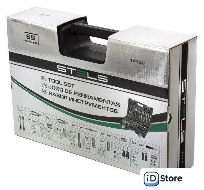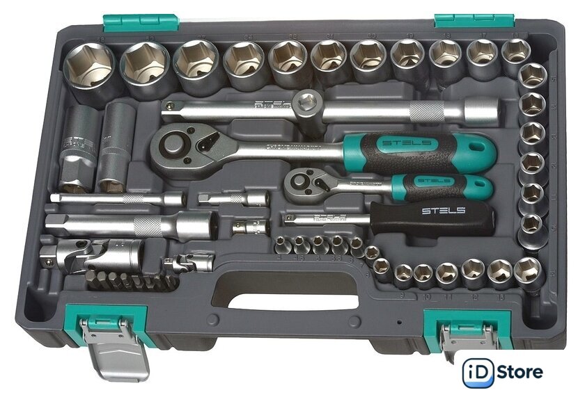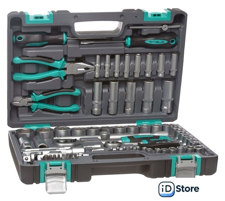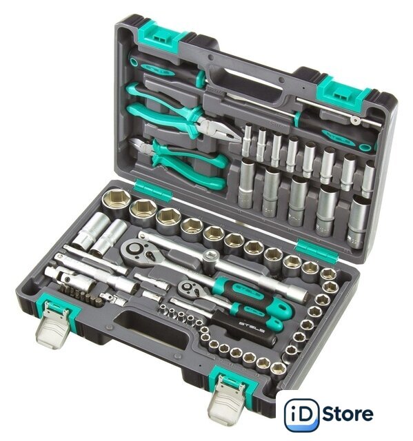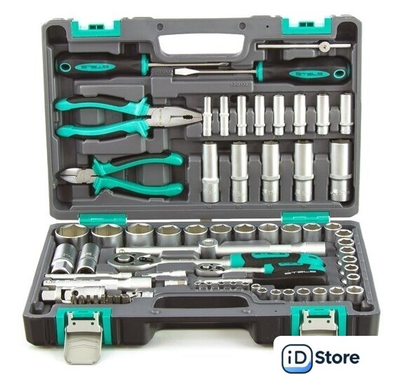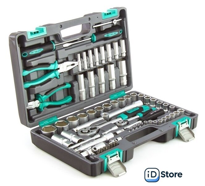 | Комплектация | - Ключ трещоточный 1/4.- Ключ трещоточный 1/2.- Головки торцевые 1/2" 10, 11, 12, 13, 14, 15, 16, 17, 18, 19, 20, 21, 22, 24, 27, 30, 32.- Головки торцевые 1/4" 4, 4.5, 5, 5.5, 6, 7, 8, 9, 10, 11, 12, 13, 14.- Головки свечные 21 мм и 16 мм.- Удлинители 1/2: 125 и 250 мм.- Удлинители 1/4: 100 мм и 50 мм.- Кардан на 1/2 и 1/4.- Вороток Т-образный 1/4.- Головка торцевая удлиненная 1/2 ” 14, 15, 17, 19, 22.- Головка торцевая удлиненная 1/4” 6, 7, 8, 9, 10, 11, 12, 13.- Бокорезы 175 мм.- Пассатижи 175 мм.- Переходник бит 1/4->1/4.- Переходник 1/2F - 3/8M.- Отвертка-держатель 1/4.- Отвертки SL6 x 100 PH2 x 100.- Биты Т10, Т15, Т20. SL3, SL4. PH1, PH2. |