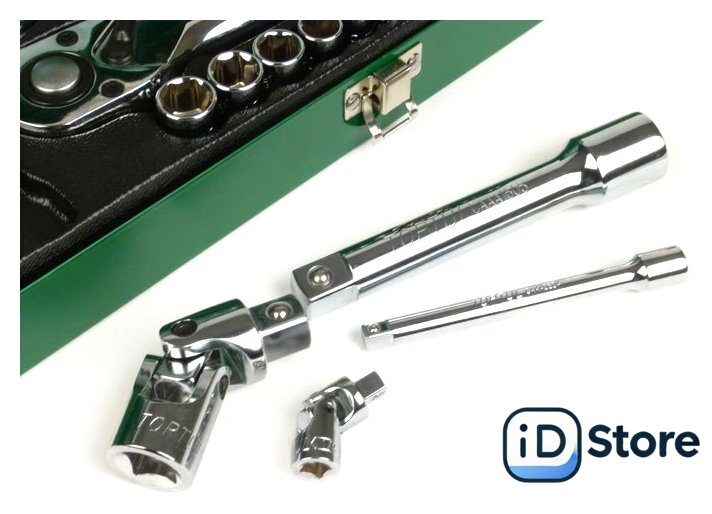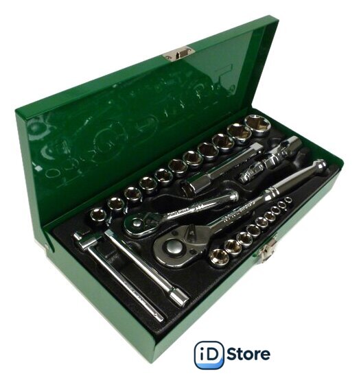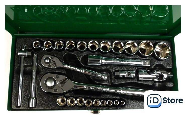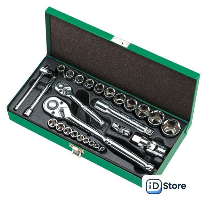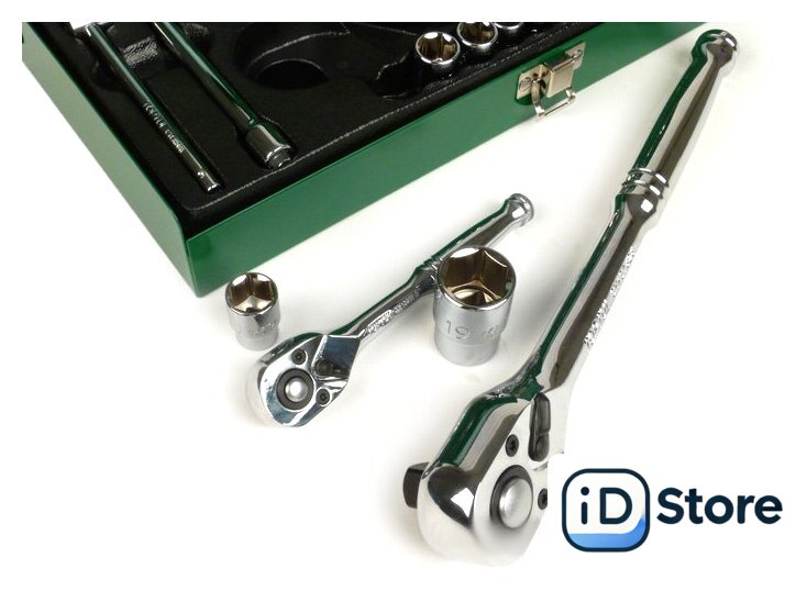 | Комплектация | 1/4" – головки торцевые шестигранные 6PT : 5, 6, 7, 8, 9, 10, 11, 12, 13 мм.1/2" – головки торцевые шестигранные 6PT : 10, 11, 12, 13, 14, 16, 17, 19, 21, 24, 27 мм. ;1/4" трещотка ;1/2" трещотка;1/4" вороток с плавающей головкой 115 мм.;1/4" карданный шарнир;1/2" карданный шарнир;1/4" удлинитель 100 мм.;1/2" удлинитель 125 мм. |