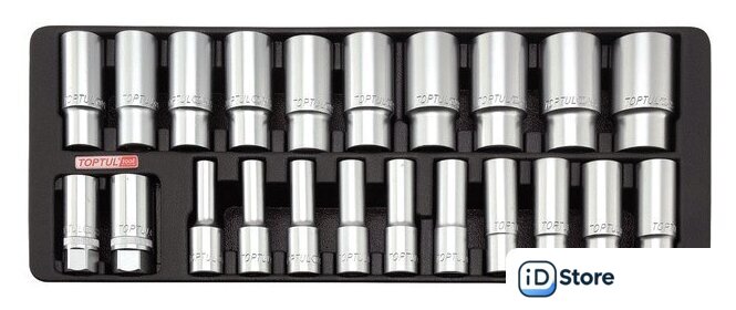| Глубокие торцевые головки 1/2" | 22 предмет(ов) (8-32 мм) |