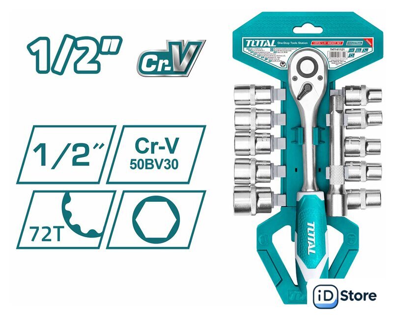 Комплектация | Вороток 1/2" с трещоткой - 1 шт.Удлинитель 1/2" 152 мм - 1 шт.Торцевая головка (10 мм, 11 мм, 12 мм, 13 мм, 14 мм, 15 мм, 17 мм, 19 мм, 21 мм, 24 мм) - 10 шт.Пластиковый держатель для хранения - 1 шт. |