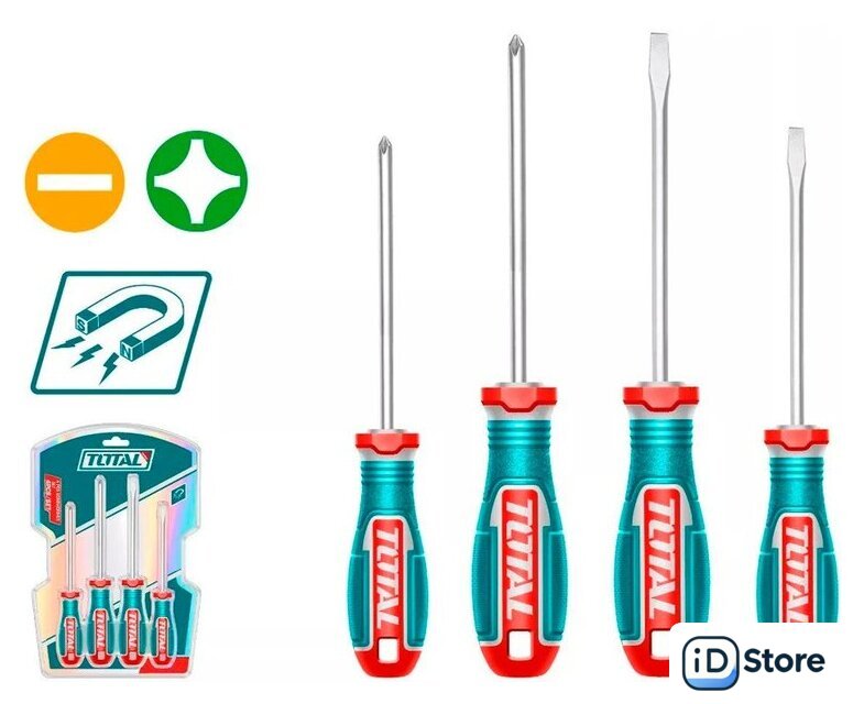 Комплектация | Отвертка SL5x100 - 1 шт.Отвертка SL6x150 - 1 шт.Отвертка PH1x100 - 1 шт.Отвертка PH2x150 - 1 шт. |