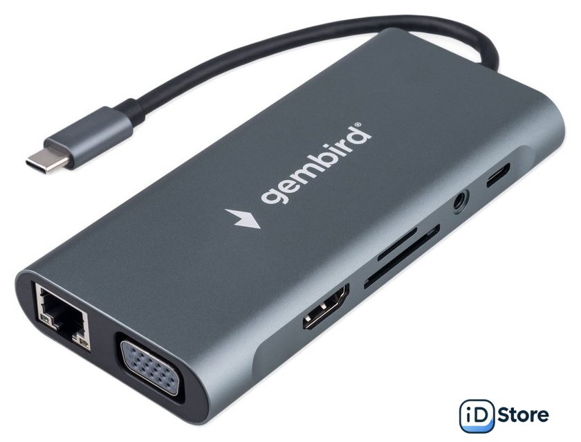 | Все разъемы на адаптере | USB-A 3.2 Gen1 (5 Гбит/с), HDMI, VGA, RJ-45, USB-C (только для зарядки), 3.5 мм jack |