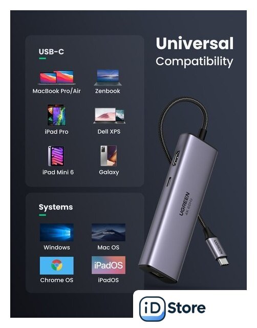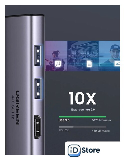 Разъемы на устройстве | USB Type-A 3.2 Gen1 (5 Гбит/с), USB Type-C, HDMI |