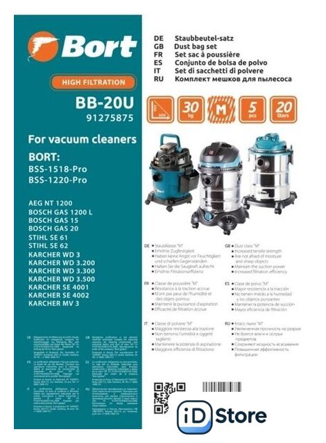 | Комплектация | 5 мешков |