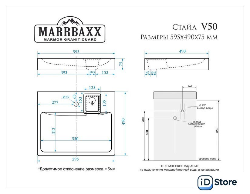 | Материал | искусственный мрамор |