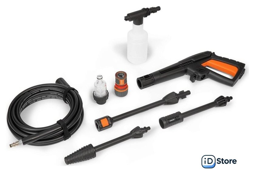 Комплектация | - Мойка высокого давления- Профессиональный пистолет - Шланг высокого давления- Насадка на пистолет распылительная- Грязевая фреза- Пеногенератор- Фильтр тонкой очистки- Быстросъёмный коннектор 1/2 с аквастопом- Держатель аксессуаров |