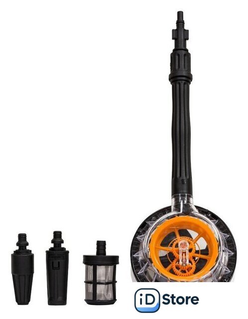 Комплектация | • мойка• пистолет• удлинительная трубка• веерная насадка• грязевая фреза• вращающаяся моющая щетка• быстросъемное соединение с фильтром тонкой очистки• фильтр для работы в режиме всасывания• стержень для очистки• руководство по эксплуатации• гарантийный талон |